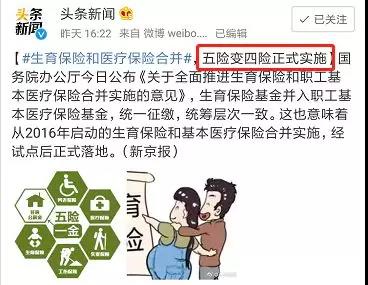 以后“五险”变“四险”,生育并入医疗。