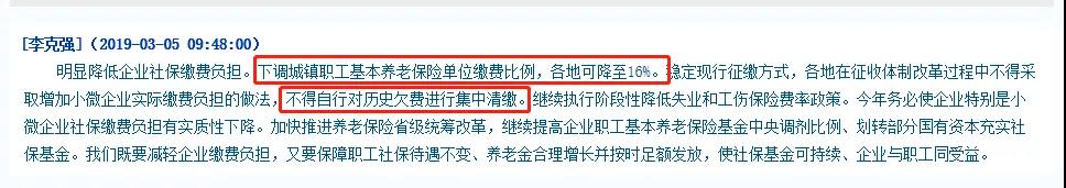两会上,总理宣布了,将下调城镇职工基本养老保险单位缴费比例,各地可降至16%!不得自行对历史欠费进行集中清缴!